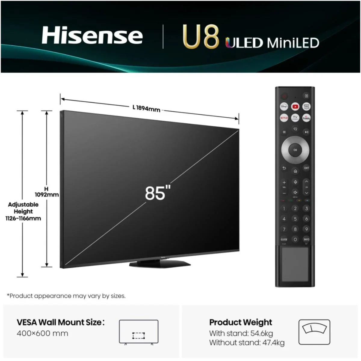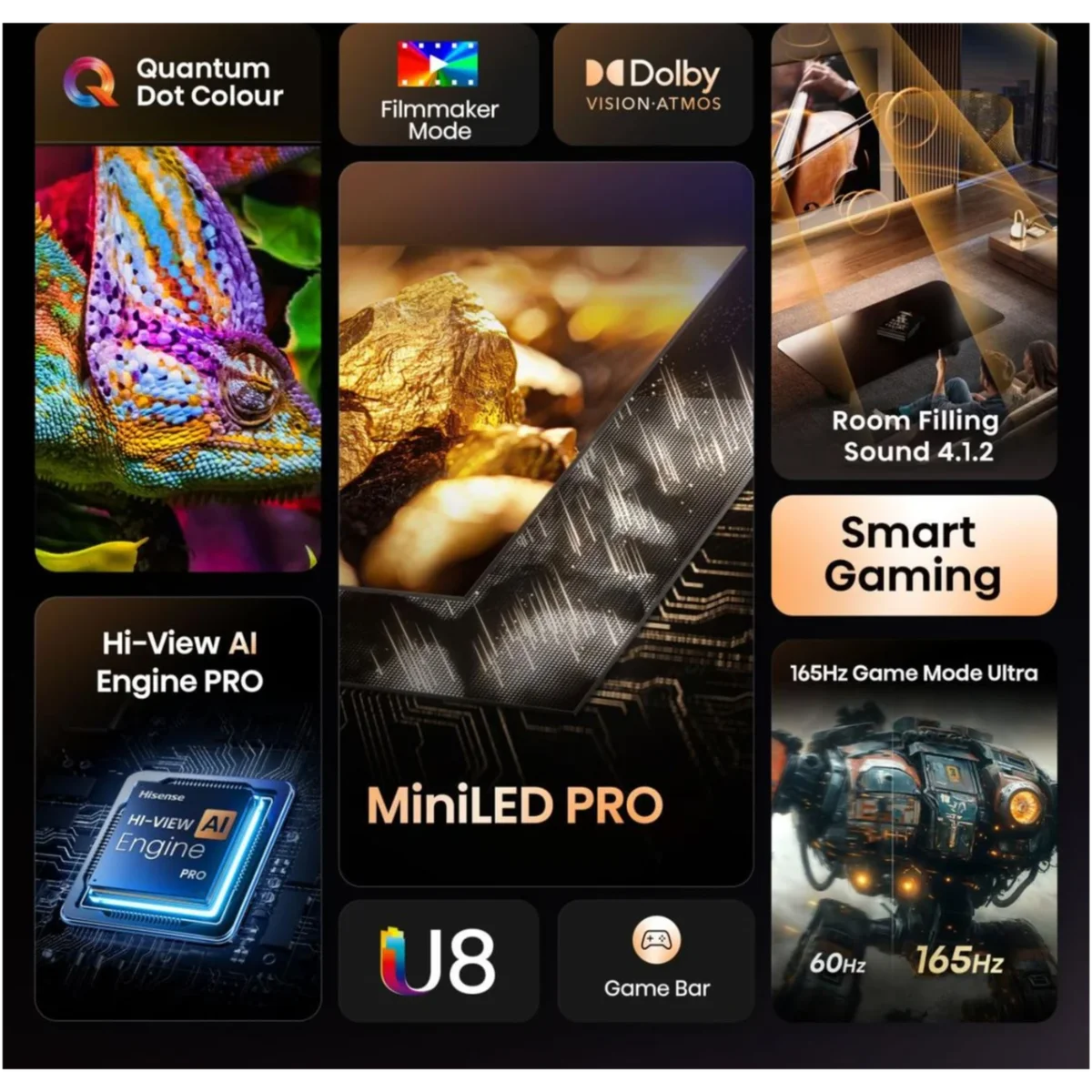 This huge U8Q impresses reviewers with its searing brightness, deep blacks and vibrant colours, making HDR movies and games look spectacular, and gamers relish the 165 Hz refresh rate and low input lag. The Freely smart platform is packed with streaming services. Nevertheless, the viewing angle is narrow and reflections can be distracting in bright rooms, and some colours appear over‑pushed in HDR. Minor VRR issues and a bit of dirty‑screen effect are noted, and the massive size requires a sturdy stand or wall mount.