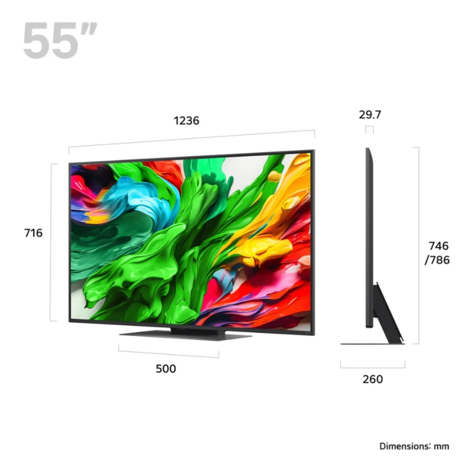 The LG 55QNED86A6A 55" QNED evo AI 4K HDR Smart TV 2025 is a premium offering that firmly positions itself as a high-end television in the market. With its advanced QNED edgelit mini LED technology, high refresh rate, and support for various HDR formats, it is well-equipped to deliver exceptional picture quality and immersive viewing experiences. Additionally, the inclusion of features such as Dolby Vision for Gaming, AMD FreeSync, and VRR (up to 120 Hz) makes it an attractive option for gamers. The TV's intelligent processor, α8 AI Processor 4K Gen8, and AI-powered features like AI Picture Pro and AI Acoustic Tuning demonstrate LG's commitment to providing cutting-edge technology and smart features. Overall, this TV is designed to appeal to those seeking a premium viewing experience with advanced features and excellent picture quality.