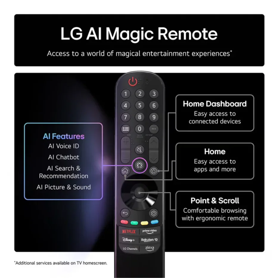 Owners are impressed by the G‑series’ ultra‑slim design and improved MLA OLED panel, which boosts peak brightness and gives HDR films real punch. They point out the accurate colours, smooth 120 Hz motion and comprehensive gaming support, and the option of wall‑mounting or using the included stand adds flexibility. Though, the very high price and risk of burn‑in if static images are displayed for long periods make some cautious. The reflective glass highlights room lights and the speakers are adequate but don’t match the premium picture quality. Despite these quirks, it’s a stylish large-screen option that blends design and performance.