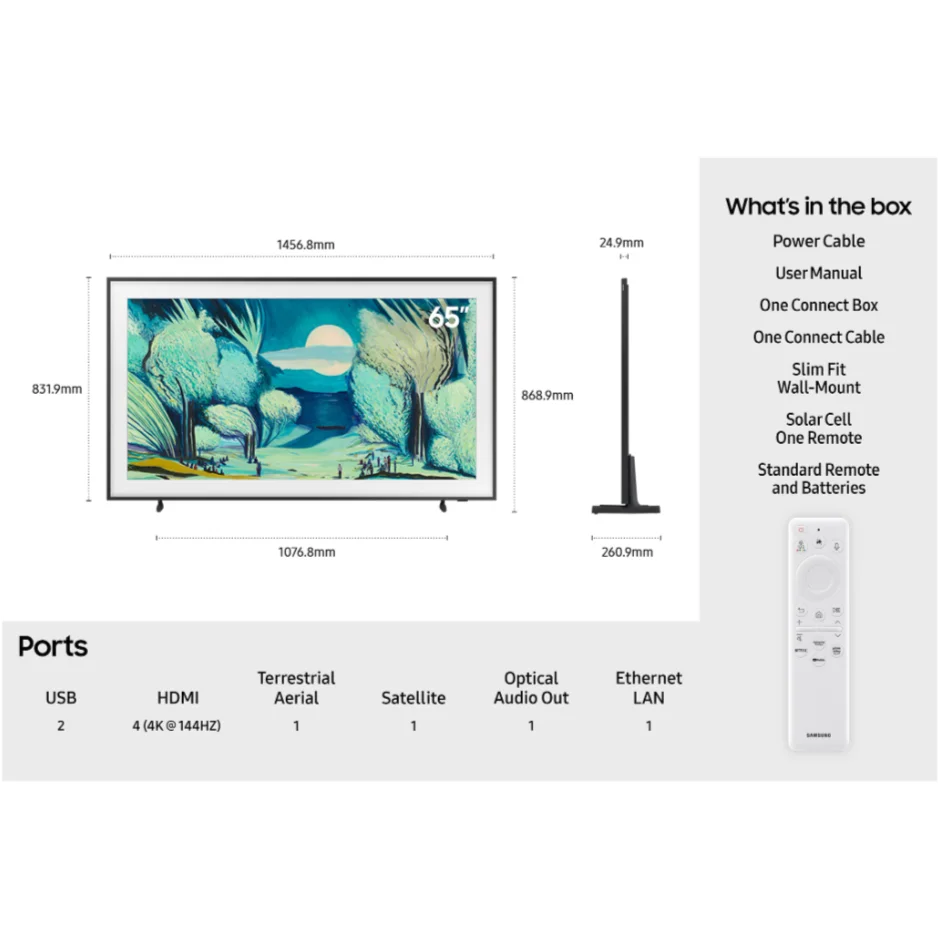 buyers valued this 65-inch model for its slim, art‑like design that blends into decor, customisable bezels and an art mode that displays paintings, solar‑powered remote and easy wall mounting; yet reviewers noted its picture quality and HDR brightness are only average for the price, subscription required for the art store and some software glitches, remote and stand feel flimsy and firmware updates can cause issues. Taken together, the feedback suggests a television that excels in certain areas yet leaves some room for improvement.